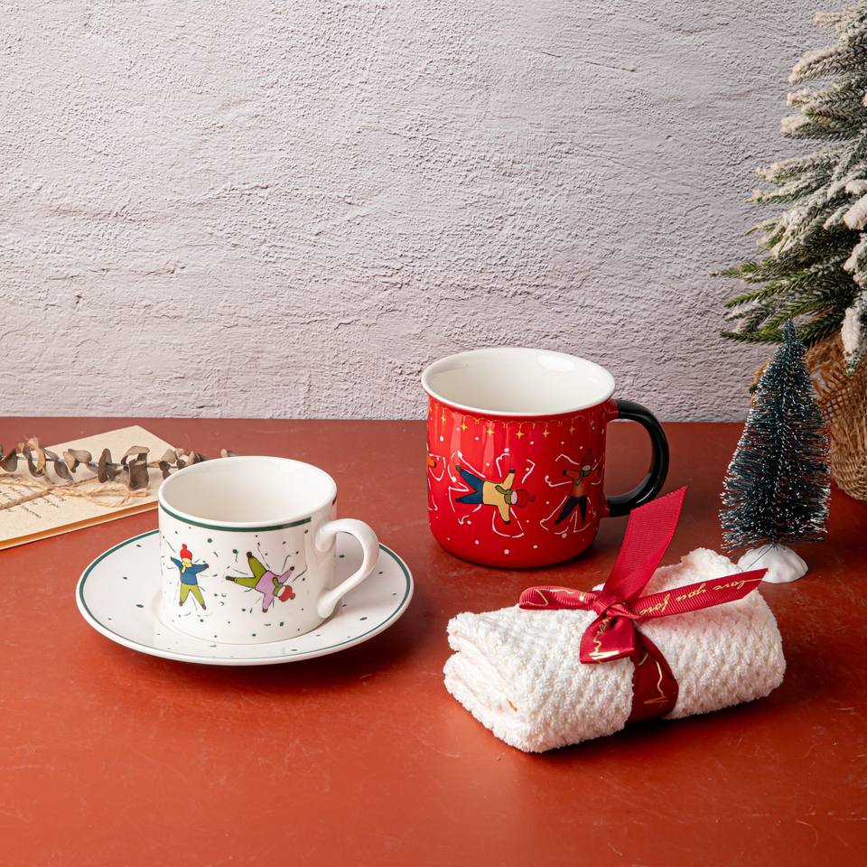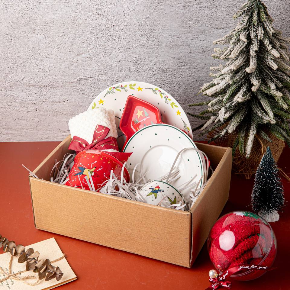 Vaisselle en céramique de haute qualité avec motif sur le thème de l'hiver, vente en gros, boîte cadeau, vaisselle en céramique rouge