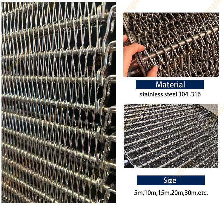 Tapis roulants en treillis métallique tissé sur mesure de haute qualité en acier inoxydable 304 à maillons pour la congélation rapide des fruits de mer en usine de transformation des produits de la mer