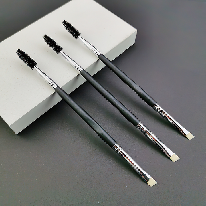 Haute Qualité Personnalisé Votre Propre Logo Angle Sourcils Spoolie Mascara Baguette Manche En Bois Noir Brosse À Cils À Double Extrémité