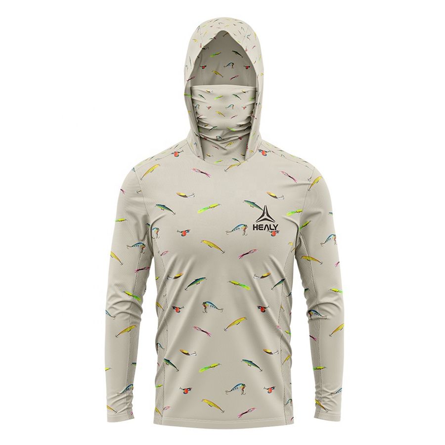 Sweat à capuche de pêche UV imprimé de logo personnalisé de haute qualité Chemise de pêche à capuche en polyester à manches longues avec masque facial