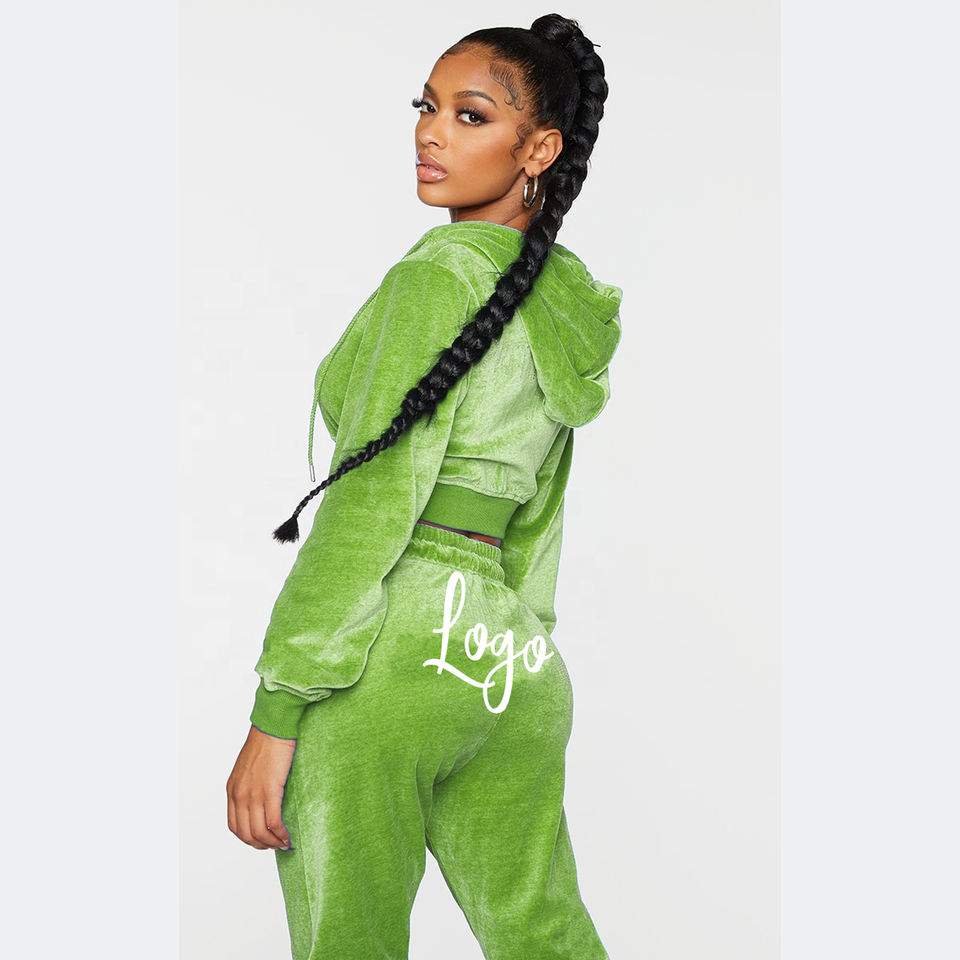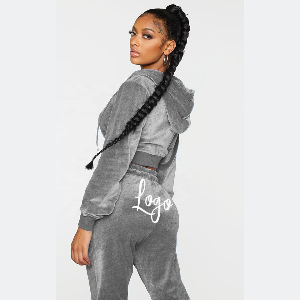 Ensemble de survêtement en velours pour femmes, design personnalisé de logo de haute qualité, ensemble de survêtement en velours à deux pièces, vêtements de sport pour femmes, survêtement en molleton de velours pour femmes