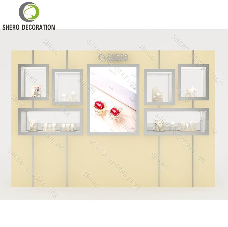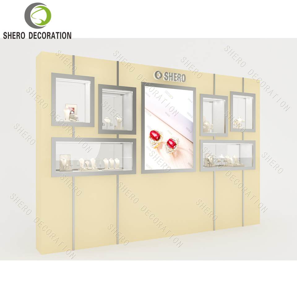 Meubles de magasin de bijouterie de haute qualité avec logo personnalisé, design de vitrine murale en bois pour magasin de bijouterie