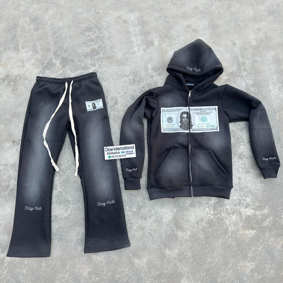 Sweat à capuche surdimensionné lavé à l'acide avec logo personnalisé de haute qualité Sweat à capuche lourd et pantalon Streetwear pour hommes