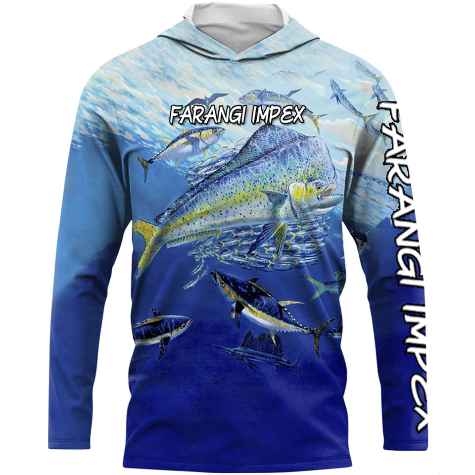 Hoodie de pêche au thon à séchage rapide en polyester avec impression numérique de logo personnalisé de haute qualité, anti-UV, masque intégré et effet rafraîchissant