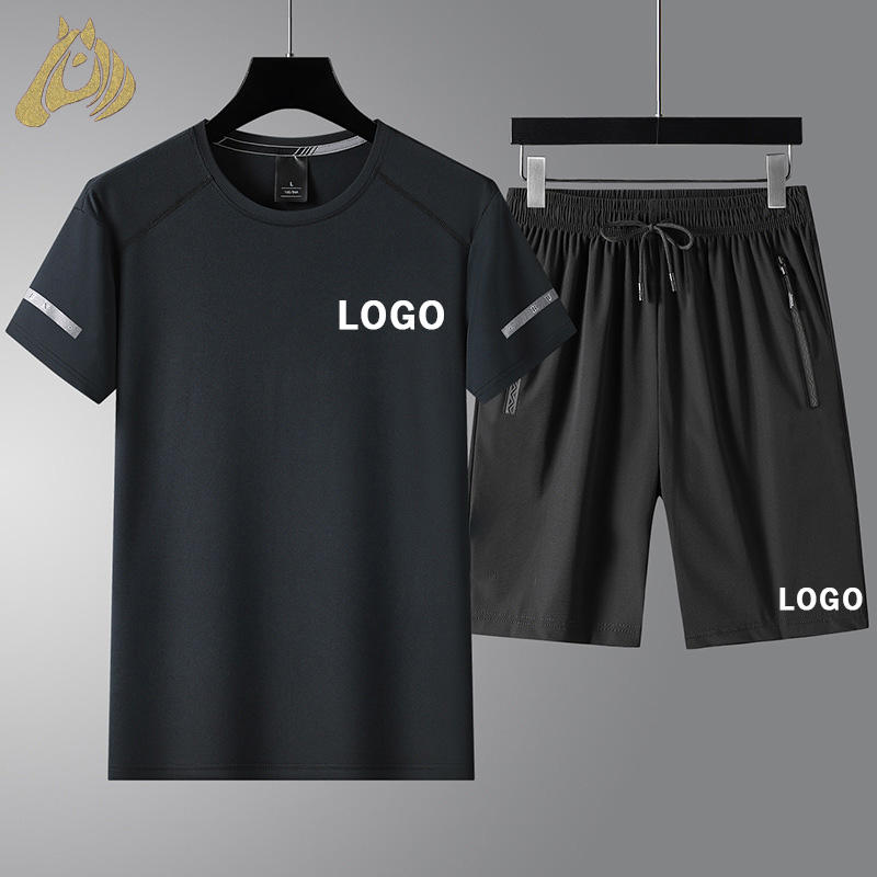 Ensembles de T-shirts en nylon respirant pour hommes avec logo personnalisé de haute qualité, ensembles de T-shirts à manches courtes pour tenue quotidienne