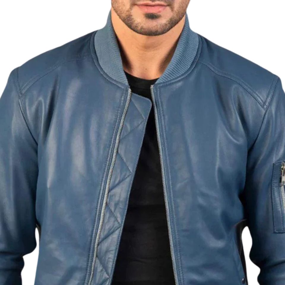 Veste en cuir bleu personnalisable de haute qualité pour l'hiver, col montant élégant, toile, services OEM professionnels, veste pour hommes