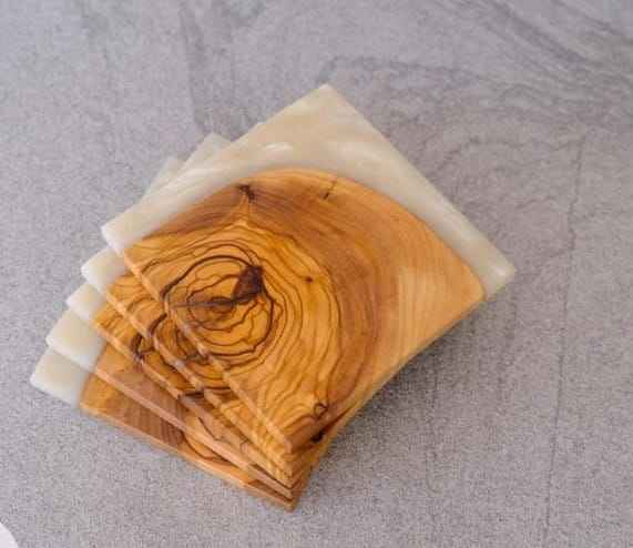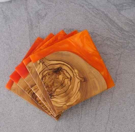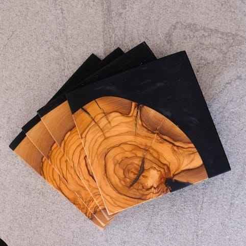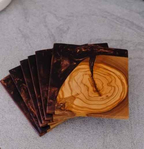 Ensemble de sous-verres en résine époxy personnalisables de haute qualité Design rond carré avec fixateur tampons de cuisine couleur noyer