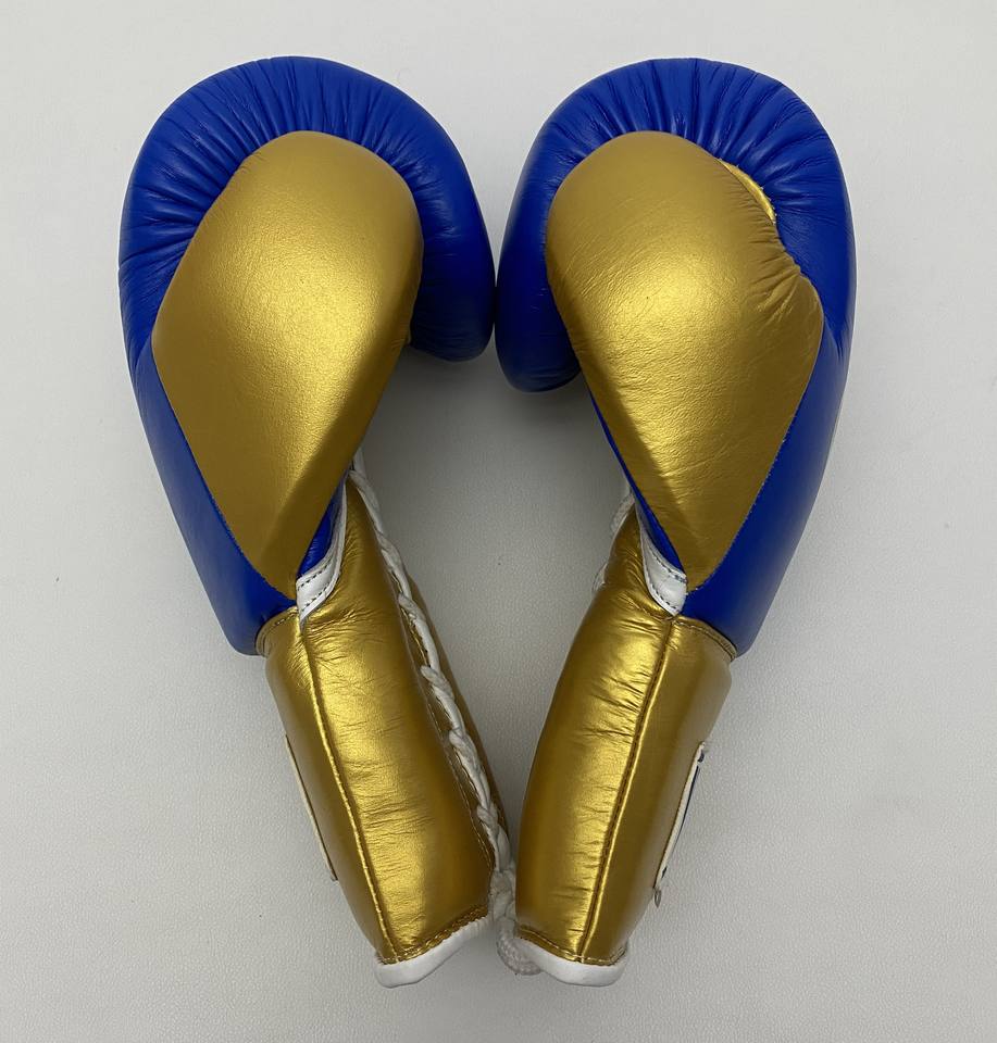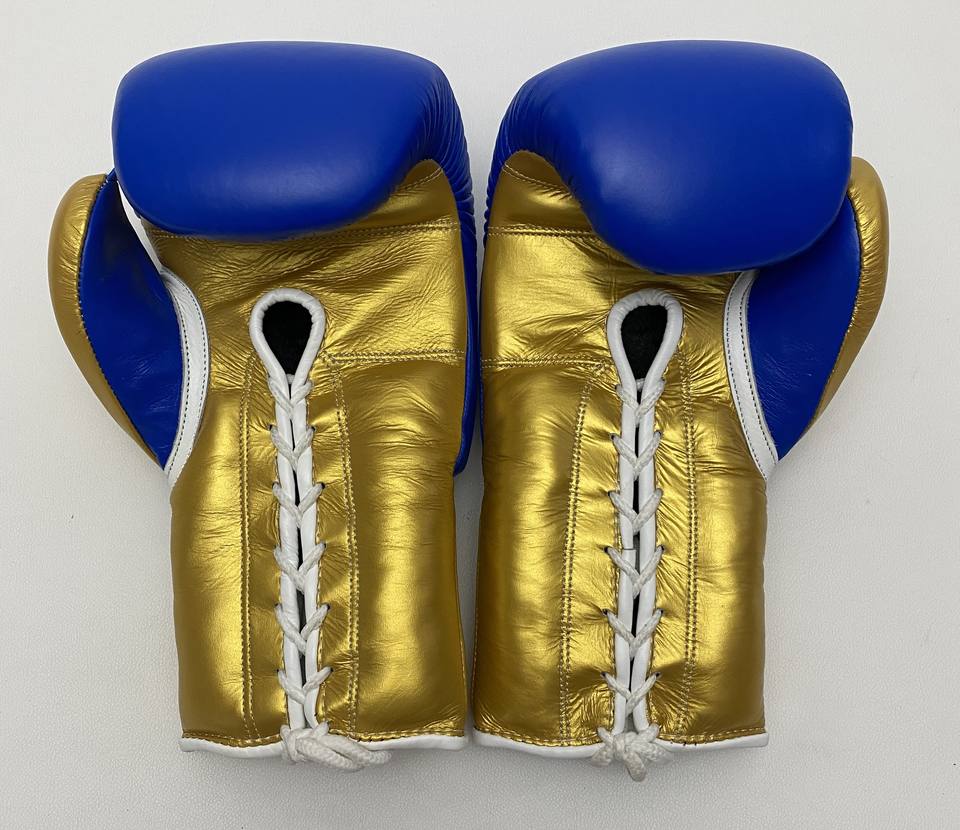 Gants de boxe en cuir véritable à lacets bleu or personnalisables de haute qualité équipement d'entraînement supérieur pour les arts martiaux et les combats
