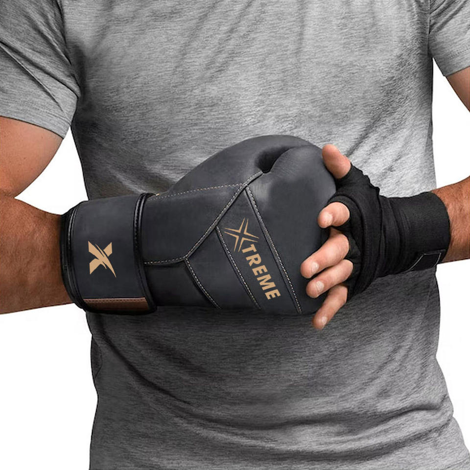 Gants de boxe unisexes personnalisables de haute qualité Xtreme Boxing, cuir de vache véritable, fermeture à boucle et crochet, entraînement antidérapant