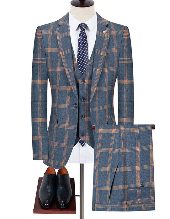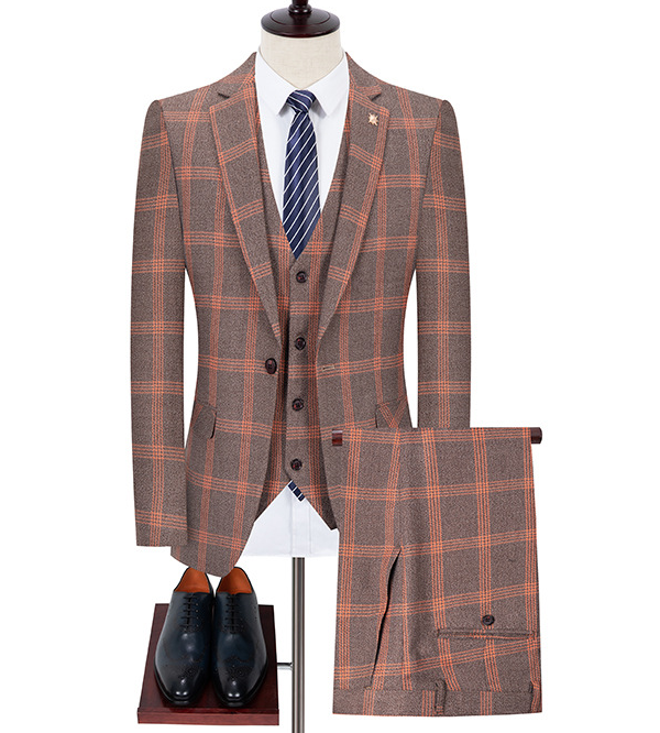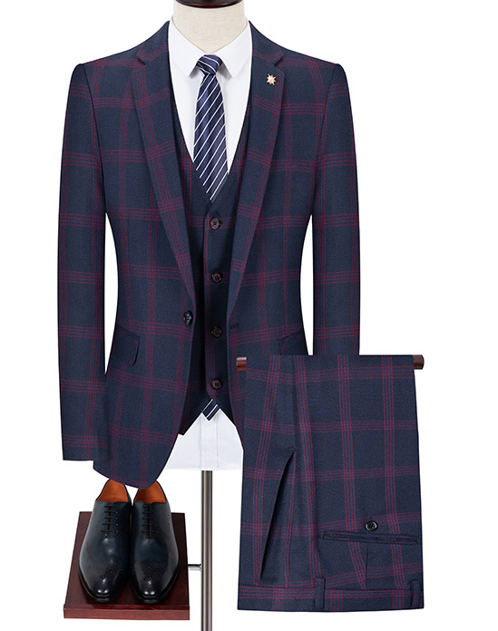 Costume d'affaires en laine italienne à carreaux de haute qualité pour hommes