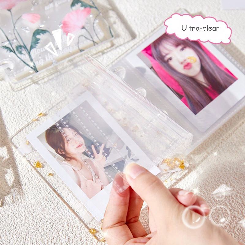 Album photo miniature de collection Kpop de haute qualité, personnalisable, avec 40 pochettes, 3 pouces, motif floral, feuille d'or, mini album en acrylique