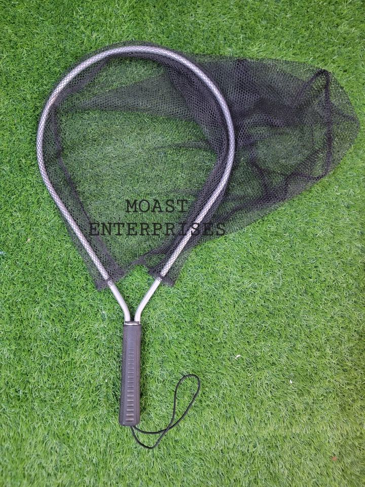 Filet d'atterrissage de pêche à la mouche léger en acier inoxydable de haute qualité avec filet à Naylon et crochet de suspension élastique