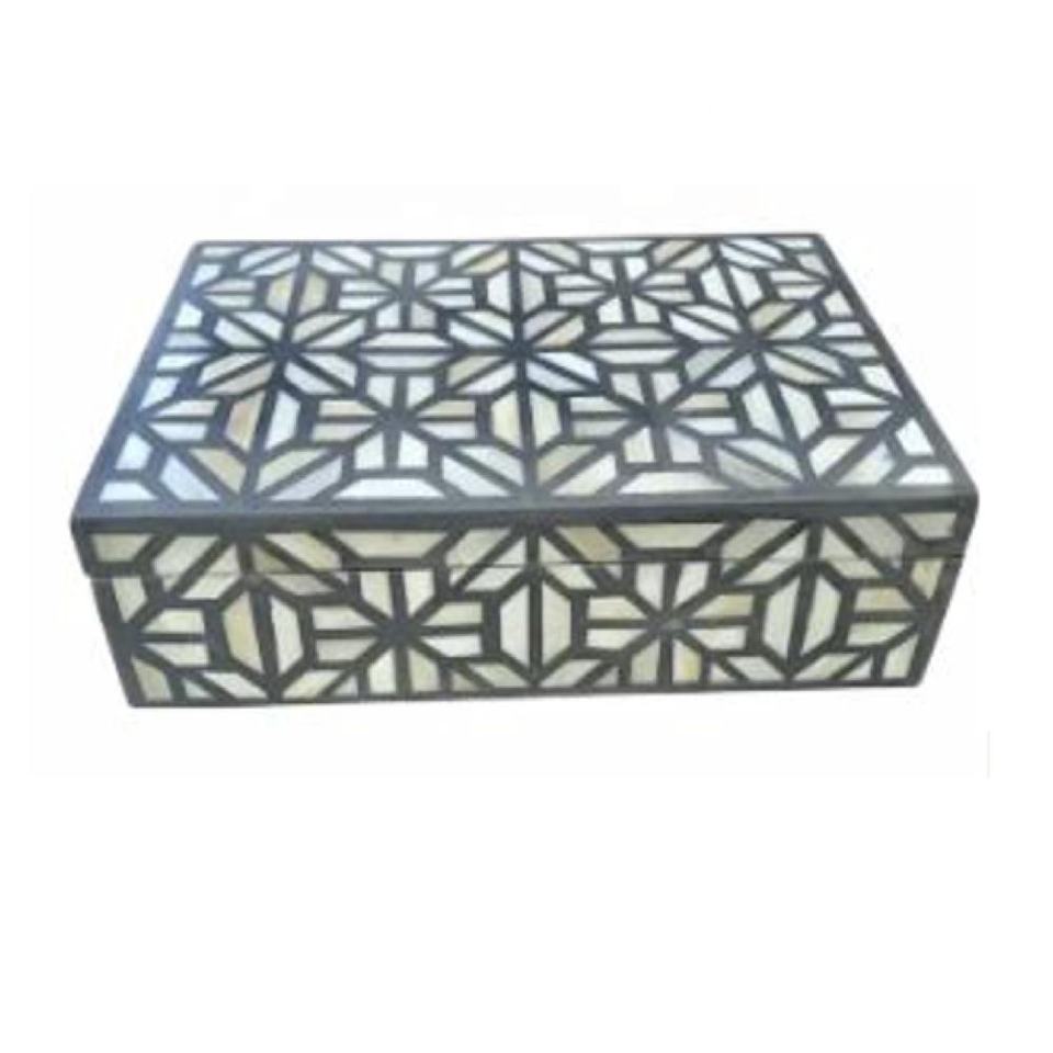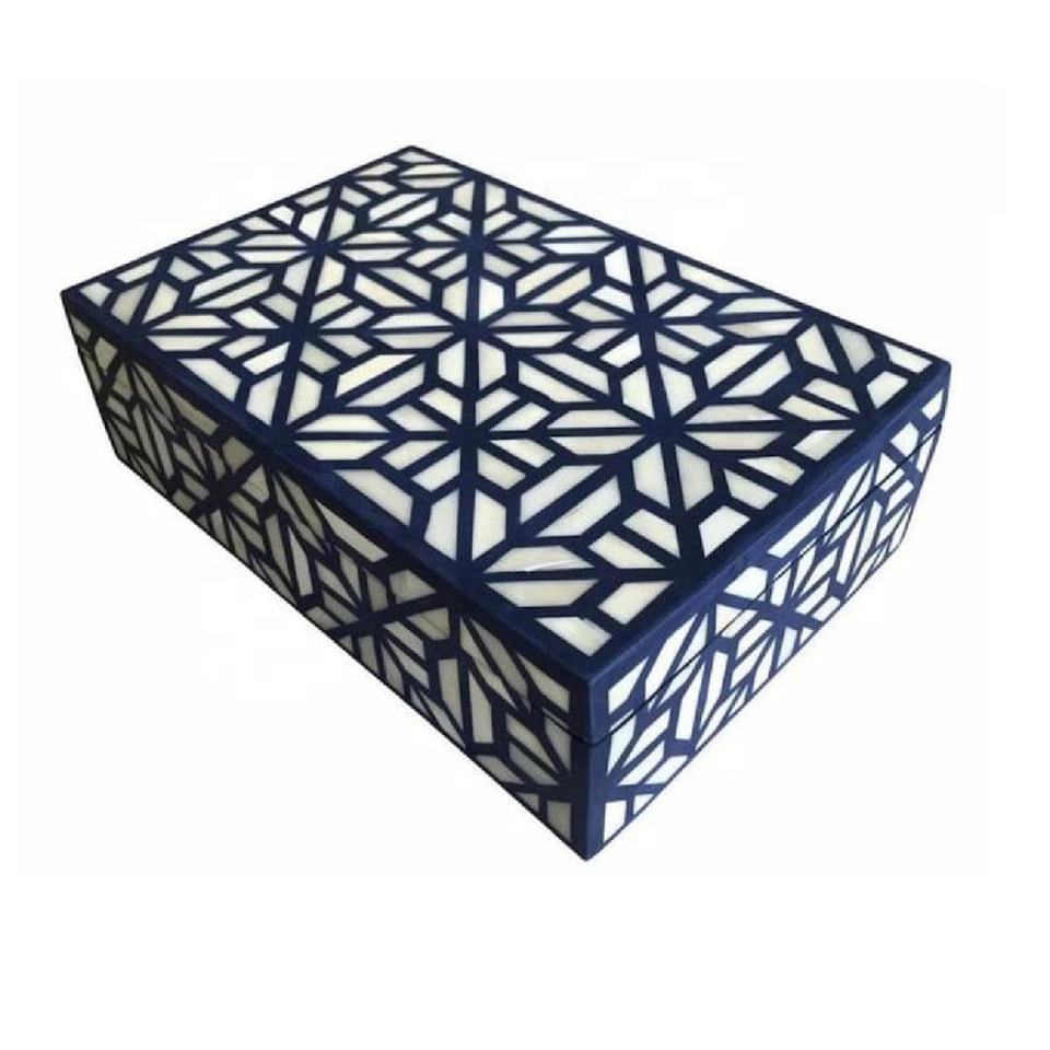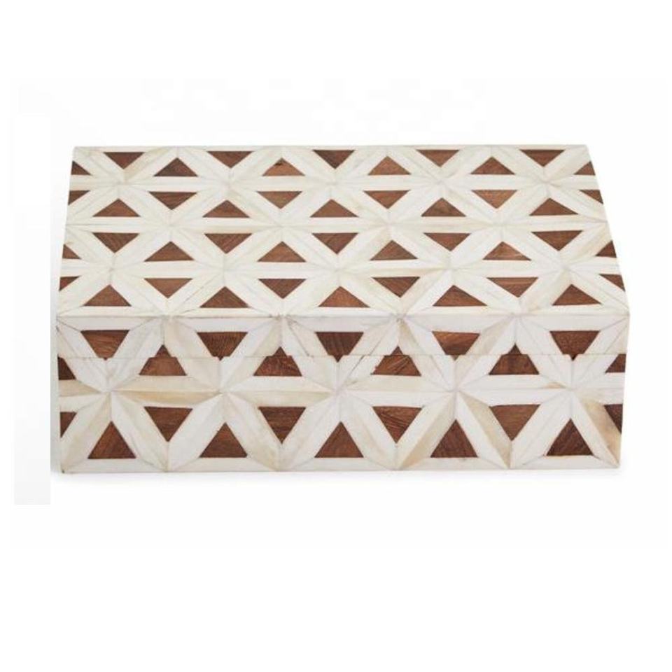 Haute qualité personnalisé os incrustation boîte motif géométrique décoratif bijoux boîte de rangement polyvalent organisateur cadeau pour les femmes