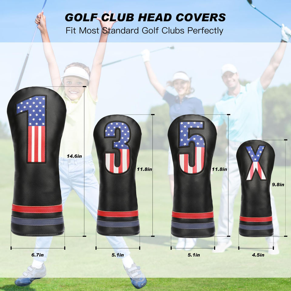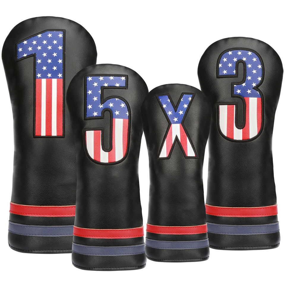 Housse de tête de club de golf en cuir PU de haute qualité, couleur personnalisée, nouveau design, logo brodé avec drapeau américain et numéro.
