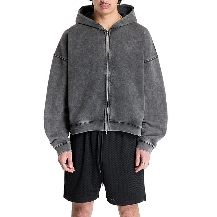 Sweat-shirt à capuche pour homme de haute qualité, personnalisé, à épaules tombantes, zippé, vintage, délavé, ample, surdimensionné, avec poche zippée