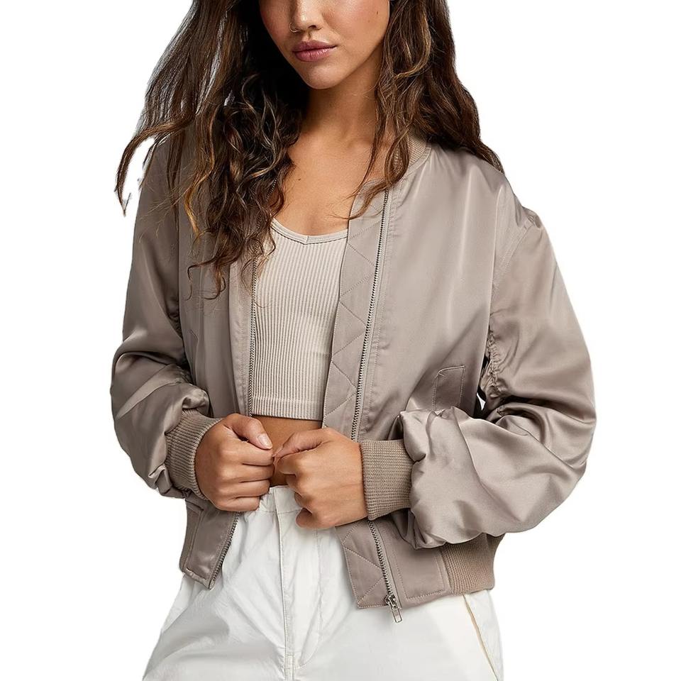 Haute qualité personnalisé fini broderie femmes Bomber veste mémoire tissu respirant confortable doux brillant hiver Nylon