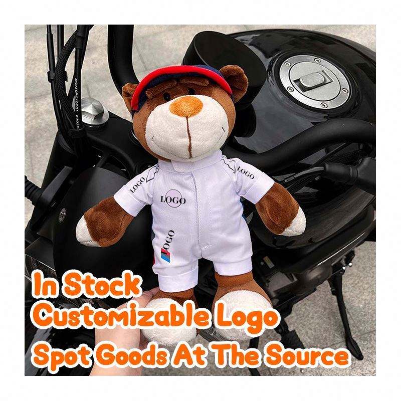 Ours en peluche personnalisé de haute qualité pour le branding de flotte, avec rembourrage en coton PP, faible MOQ, cadeau d'anniversaire pour motards