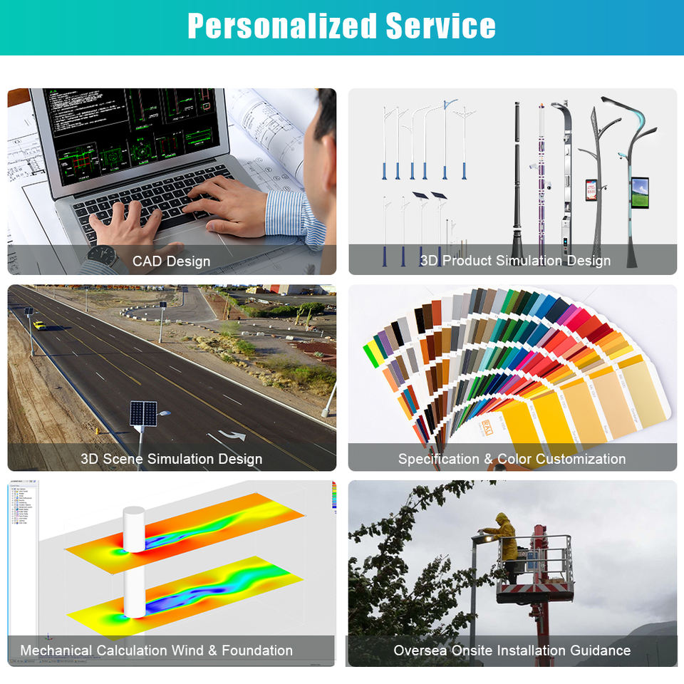 Haute qualité personnalisé galvanisé Q235 acier solaire jardin lumière pôle extérieur 2m 3m 4m 5m 6m lampadaire lampadaire