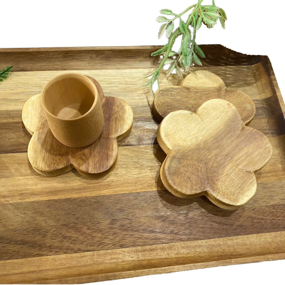 Haute qualité personnalisé fabriqué à la main Acacia bois de hêtre maison créative Doussiewood sous-verre en bois napperon ensemble fleur tapis tampons