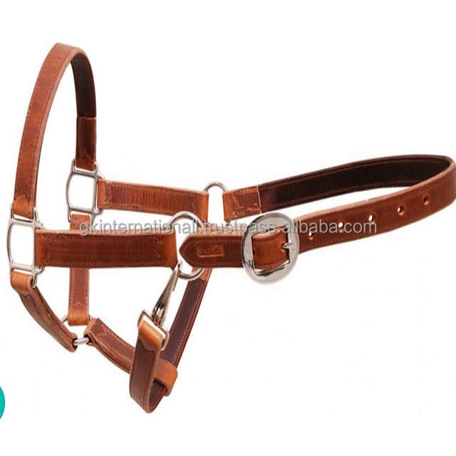 Licou de cheval en cuir marron réglable durable fait à la main personnalisé de haute qualité avec du matériel en laiton à la fabrication en gros