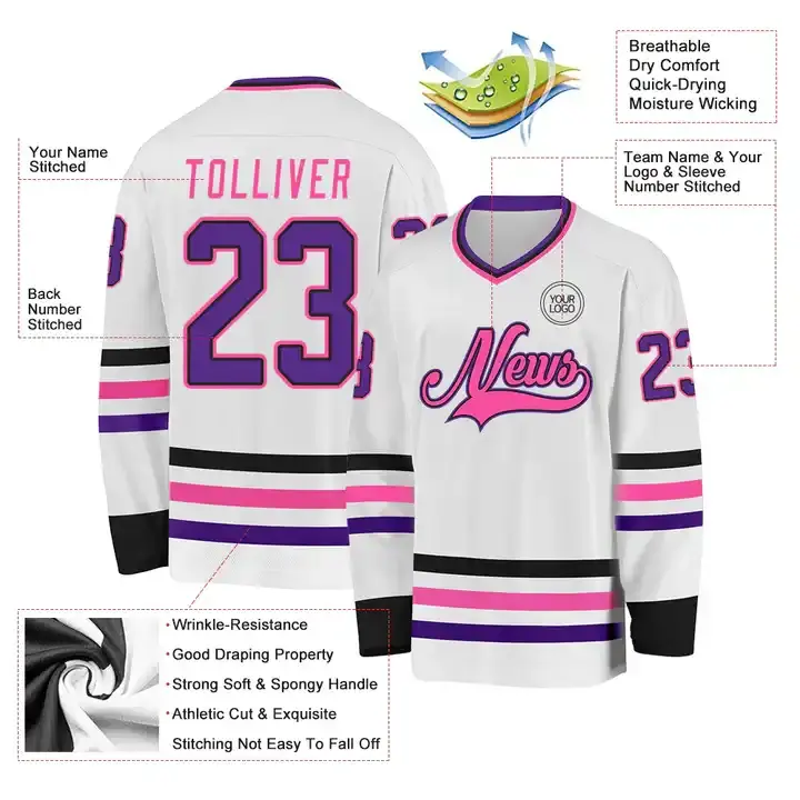 Haute Qualité Personnalisé Dernier Produit Sublimation Hockey Sur Glace Jersey Impression À Séchage Rapide OEM Sport Slim Fit Hockey Jersey