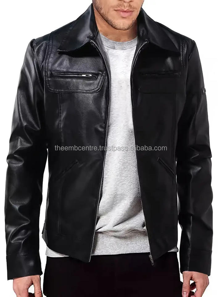 Veste en cuir de haute qualité logo personnalisé à la mode à prix de vente entier vêtements coupe-vent veste en cuir robuste pour hommes