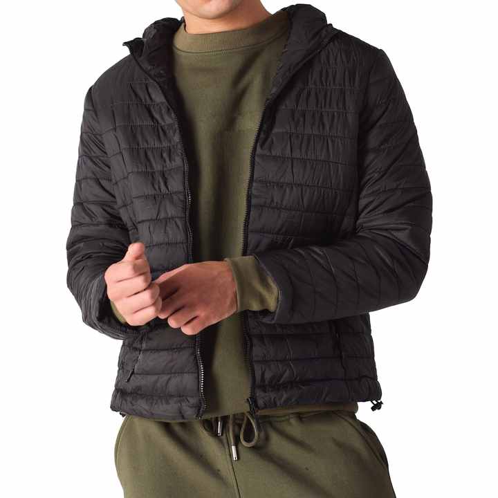 Veste matelassée noire légère pour homme, avec logo personnalisé imprimé, manches longues, meilleur design, prix abordable, collection 2026