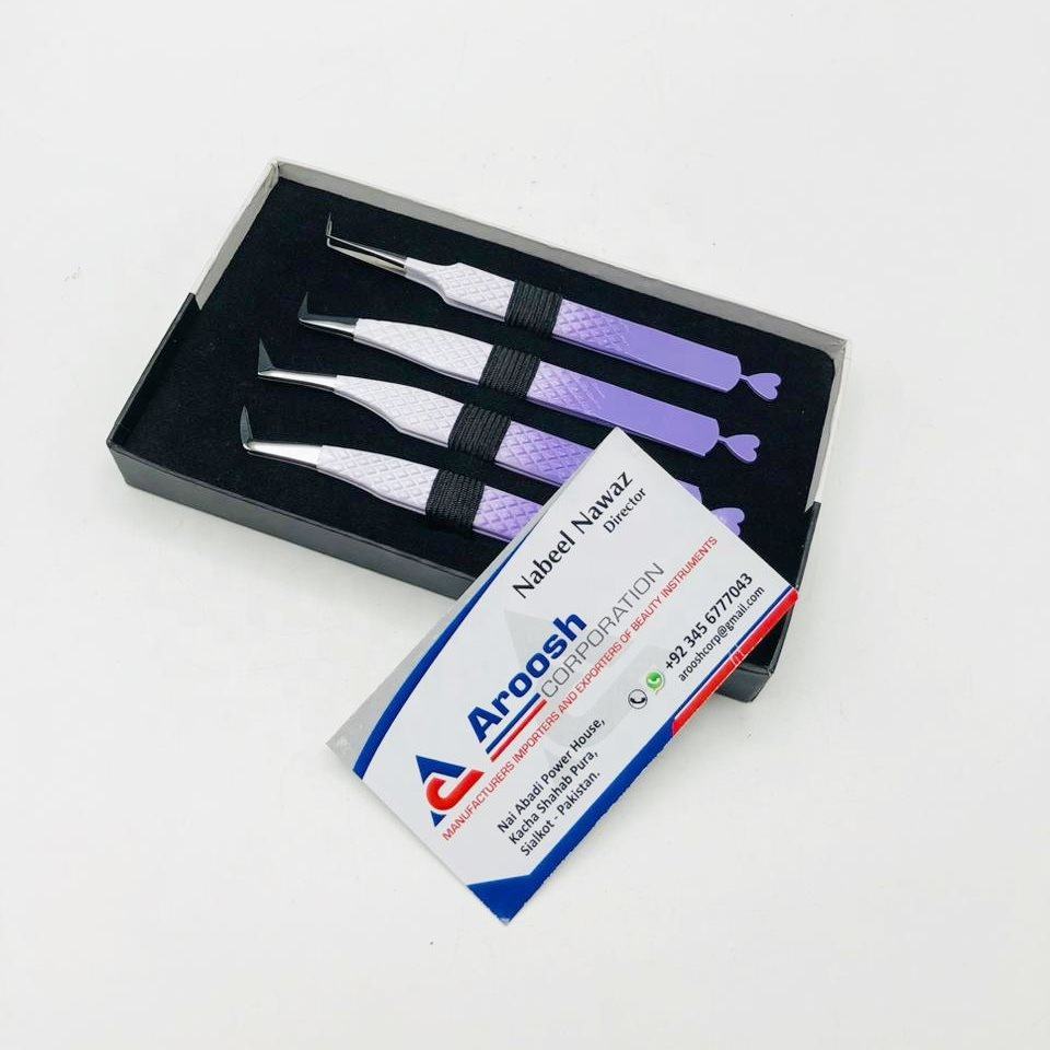 Pince à cils en acier inoxydable avec logo personnalisé de haute qualité 90 45 degrés Diamond Grip Heart Design White Purple Color