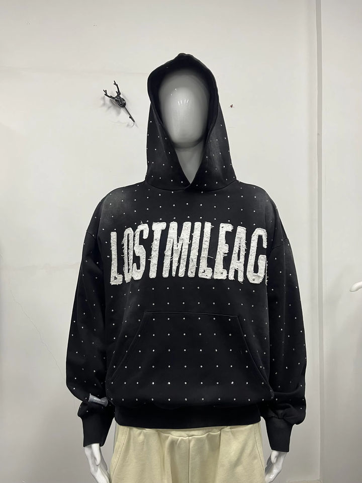 Sweat-shirt à capuche pour homme de haute qualité, personnalisé, taille XL, vente en gros, style vintage, polaire uni, strass, sweat-shirt surdimensionné