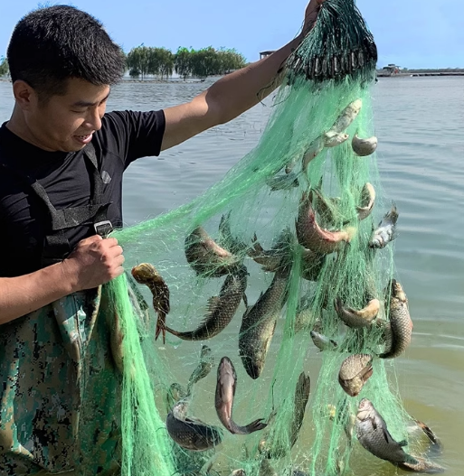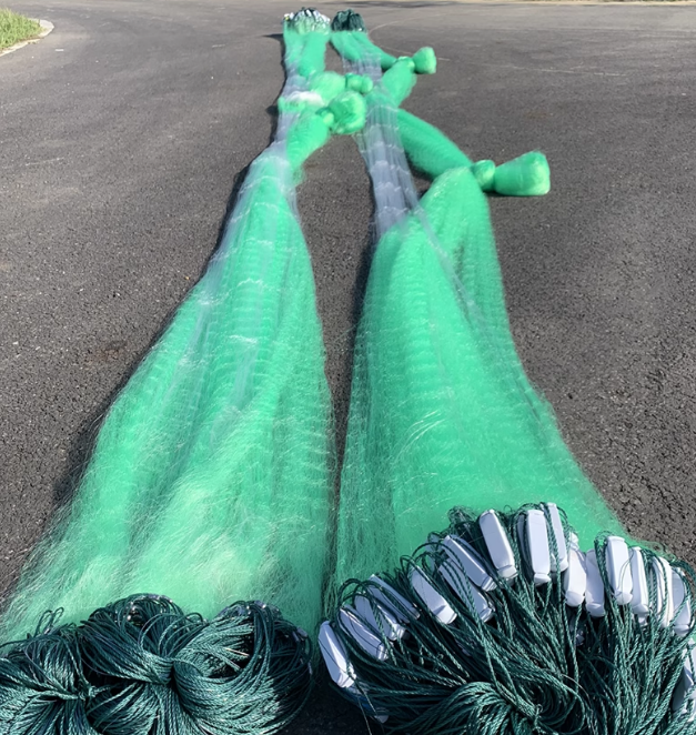 Filet flottant trois couches en soie verte 35m de long 1,5 m de haut 1 doigt