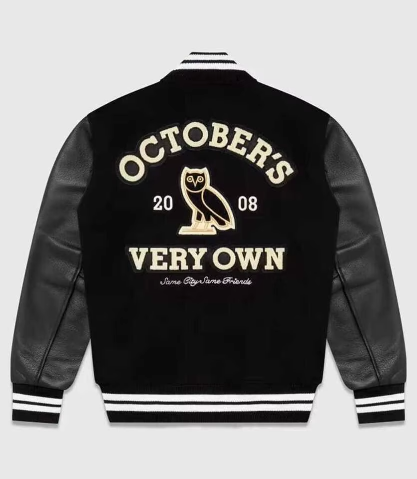 Veste de baseball universitaire pour homme de haute qualité, personnalisée, ODM OEM, faite à la main, avec des manches en cuir, rouge OVO
