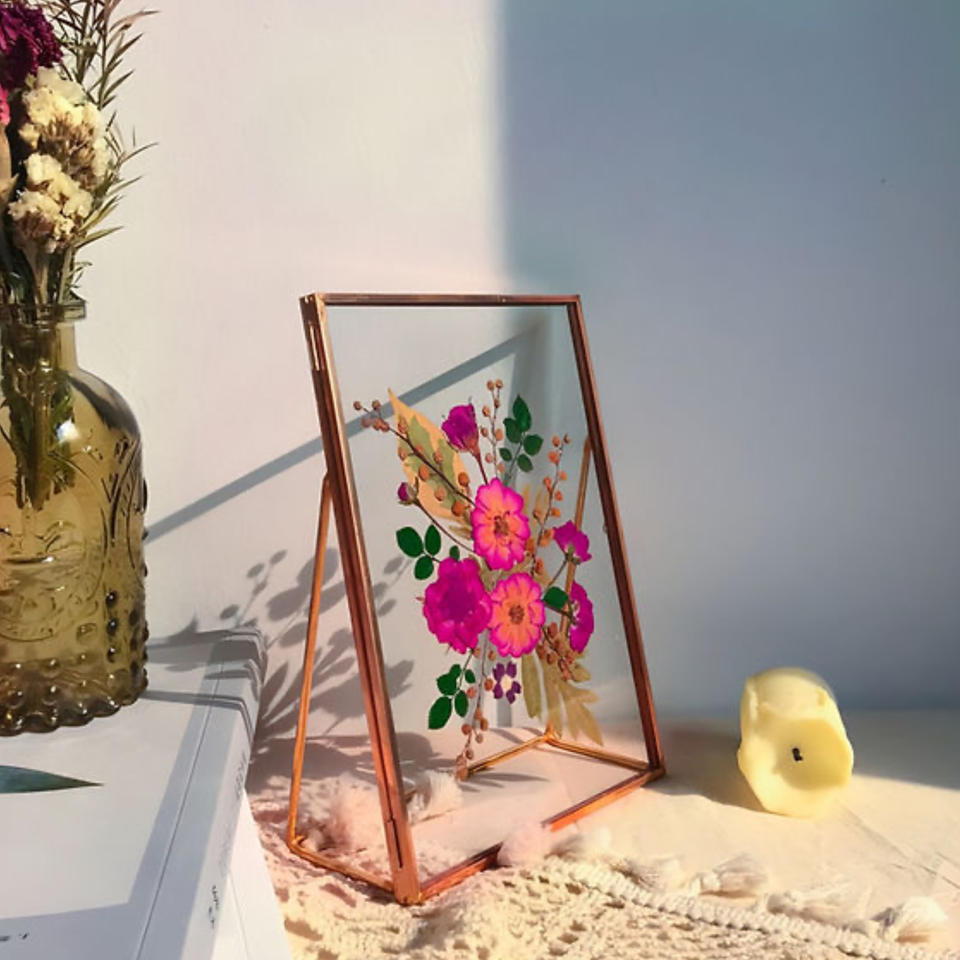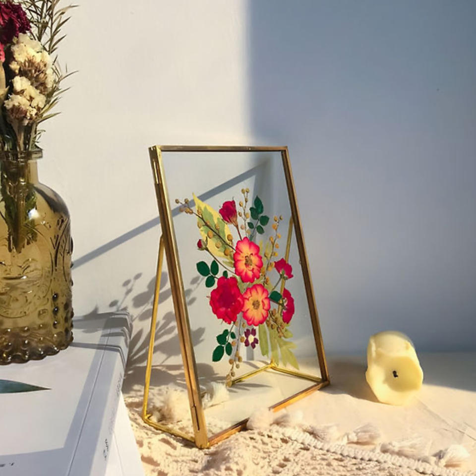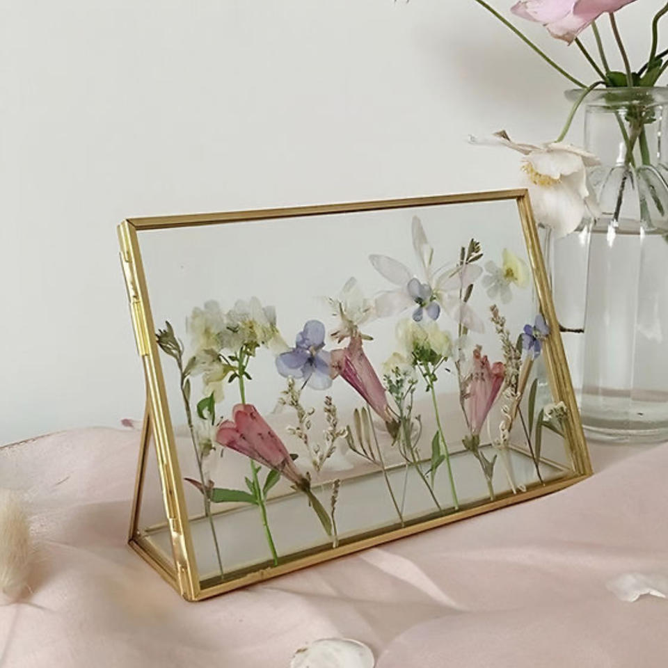 Haute qualité taille personnalisée Double verre support de table en laiton cadre Photo Design classique décor à la maison produit de mariage