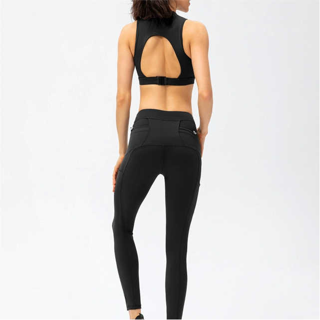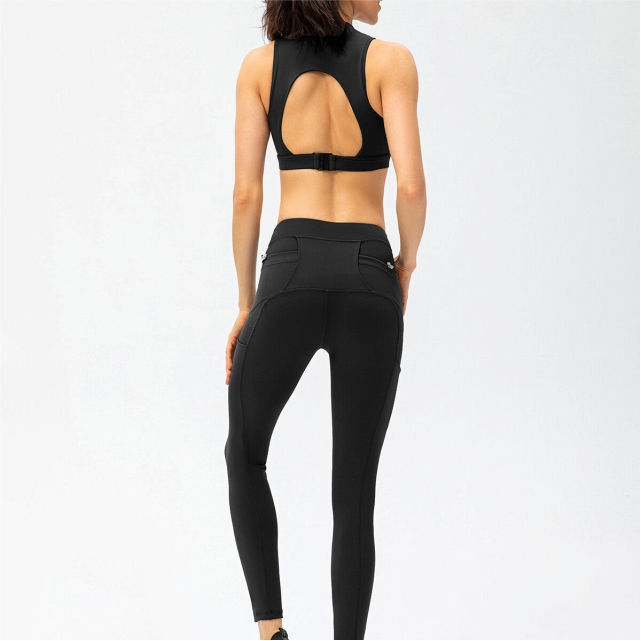 Ensemble de yoga personnalisé de haute qualité, vêtements de sport solides pour la gym, fabrication OEM, personnalisable à l'avant, en Spandex/Polyester respirant