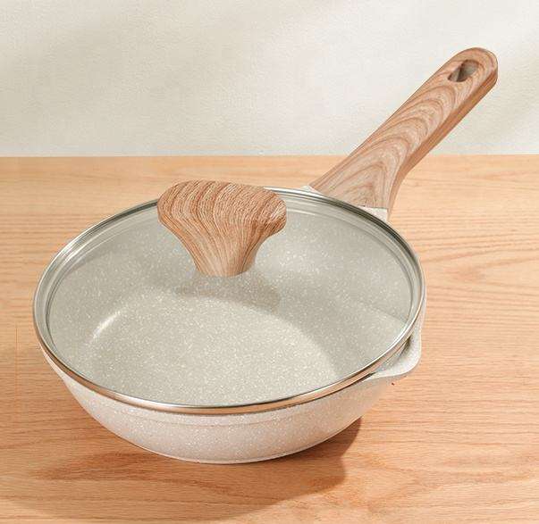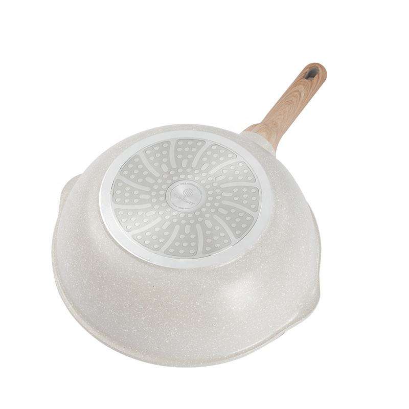 High Quality Customized logo Non-Stick Frying Pan Wok Fry Pan With Wooden Handle