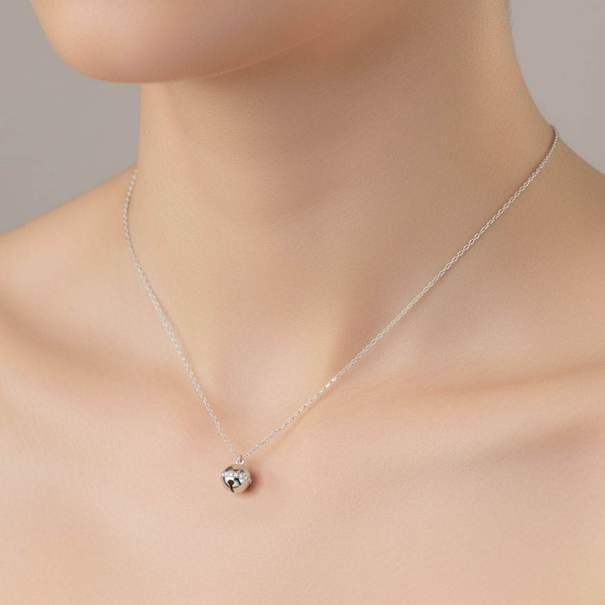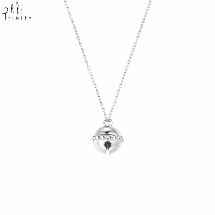 Nom du produit:Collier avec pendentif en or blanc massif 18 carats, motif clochette mignon et diamant naturel