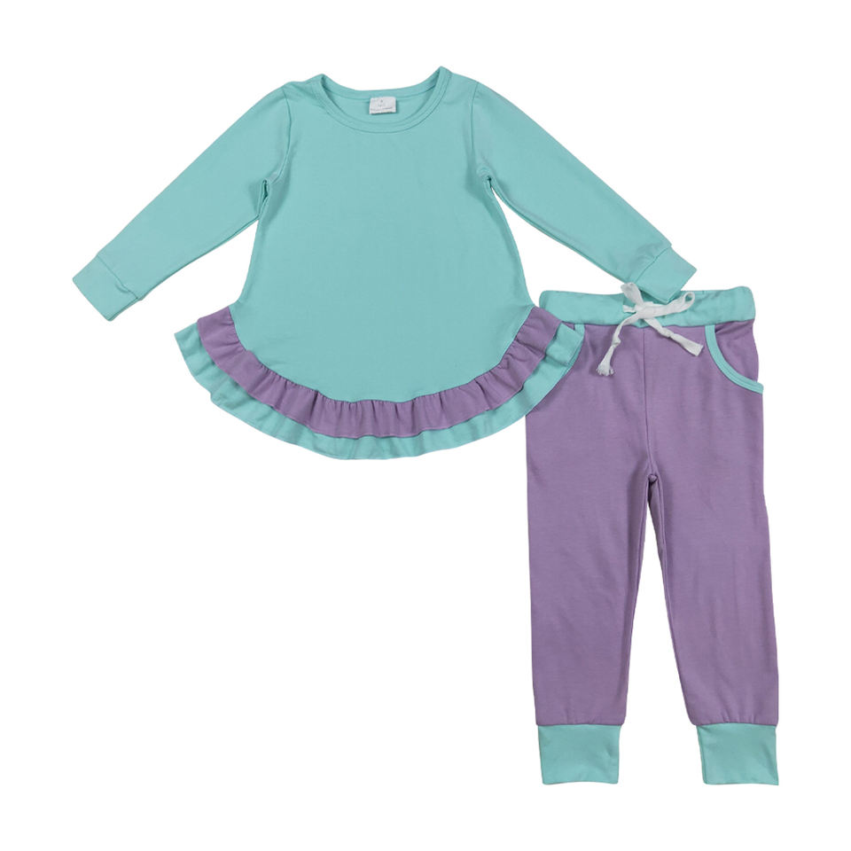 Haute qualité mignon bleu à manches longues violet pantalon filles ensemble enfant en bas âge filles vêtements Boutique en gros Offre Spéciale nouveauté Offre Spéciale