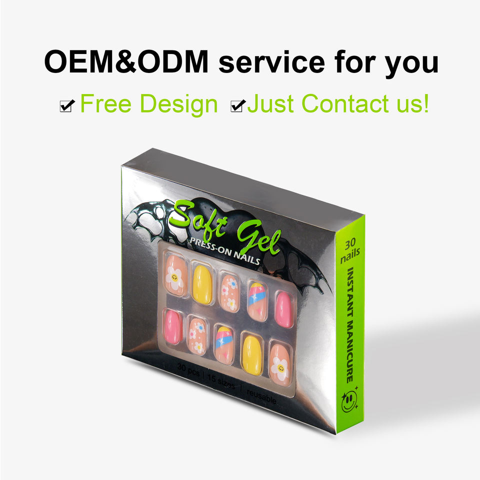 Faux ongles fantaisie de haute qualité avec motif floral mignon, 24 pièces, 12 tailles, en PMMA