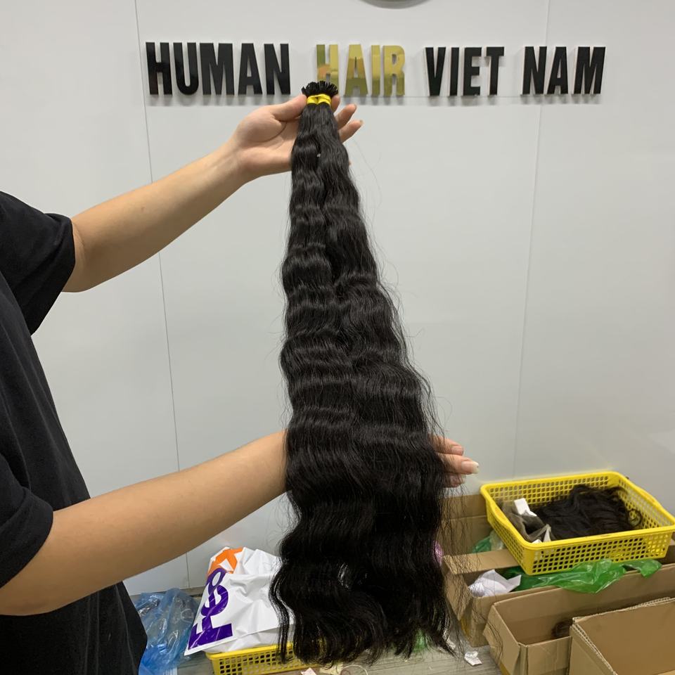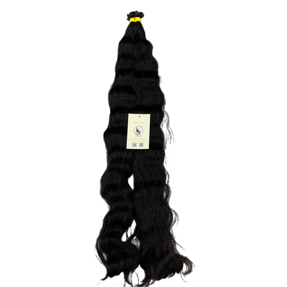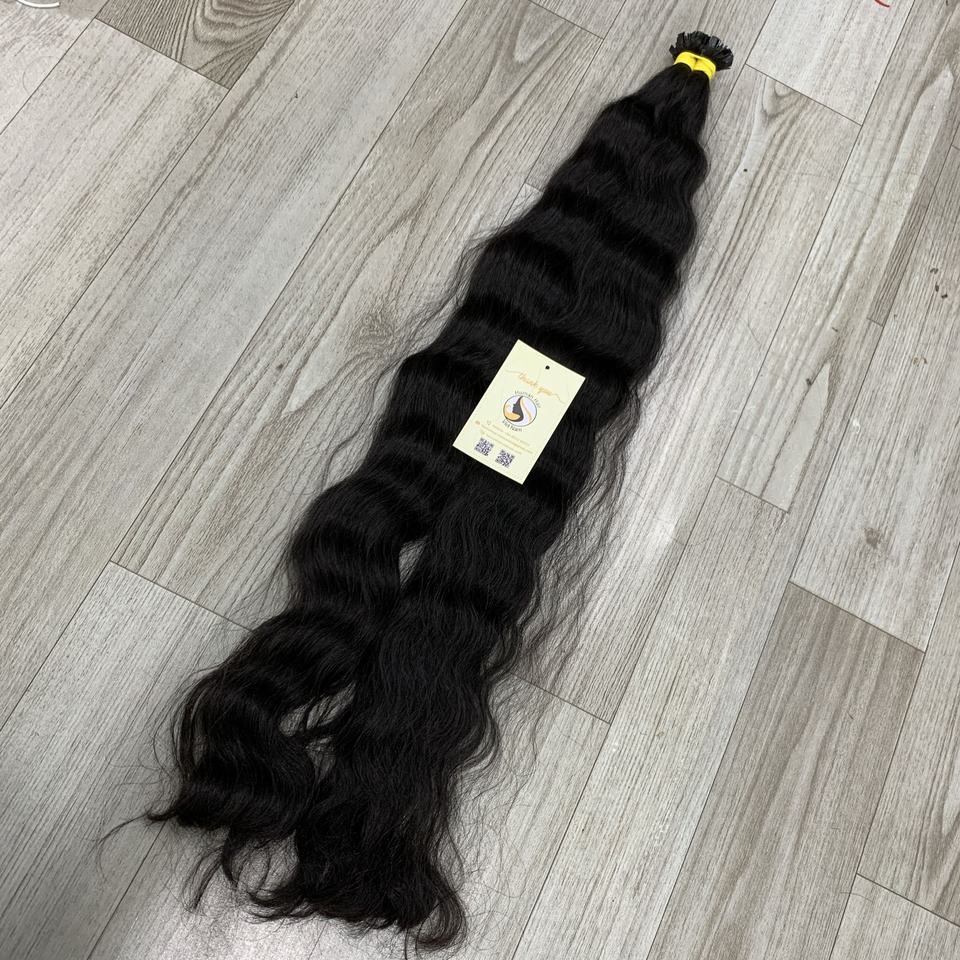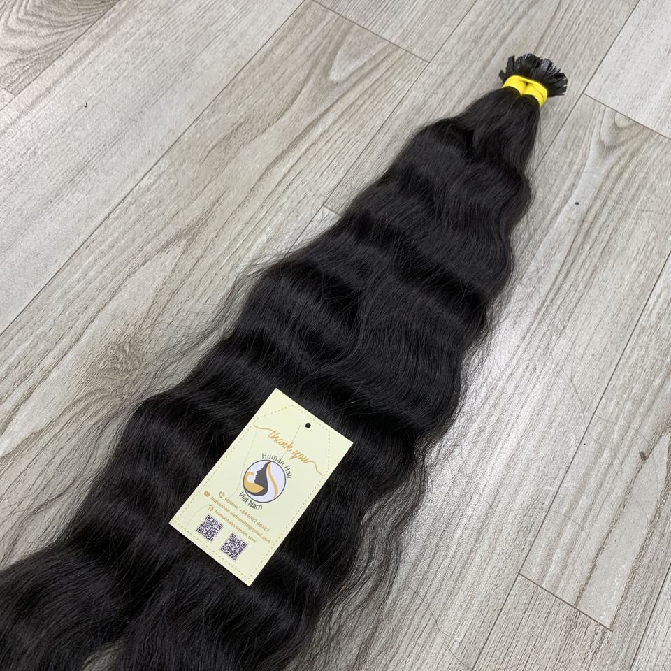 Cuticules de haute qualité alignées pré-collées ondulées kératine cheveux pointe plate noir vraies extensions de cheveux humains en usine
