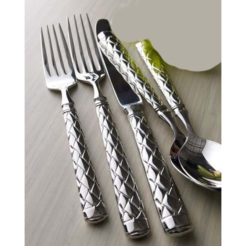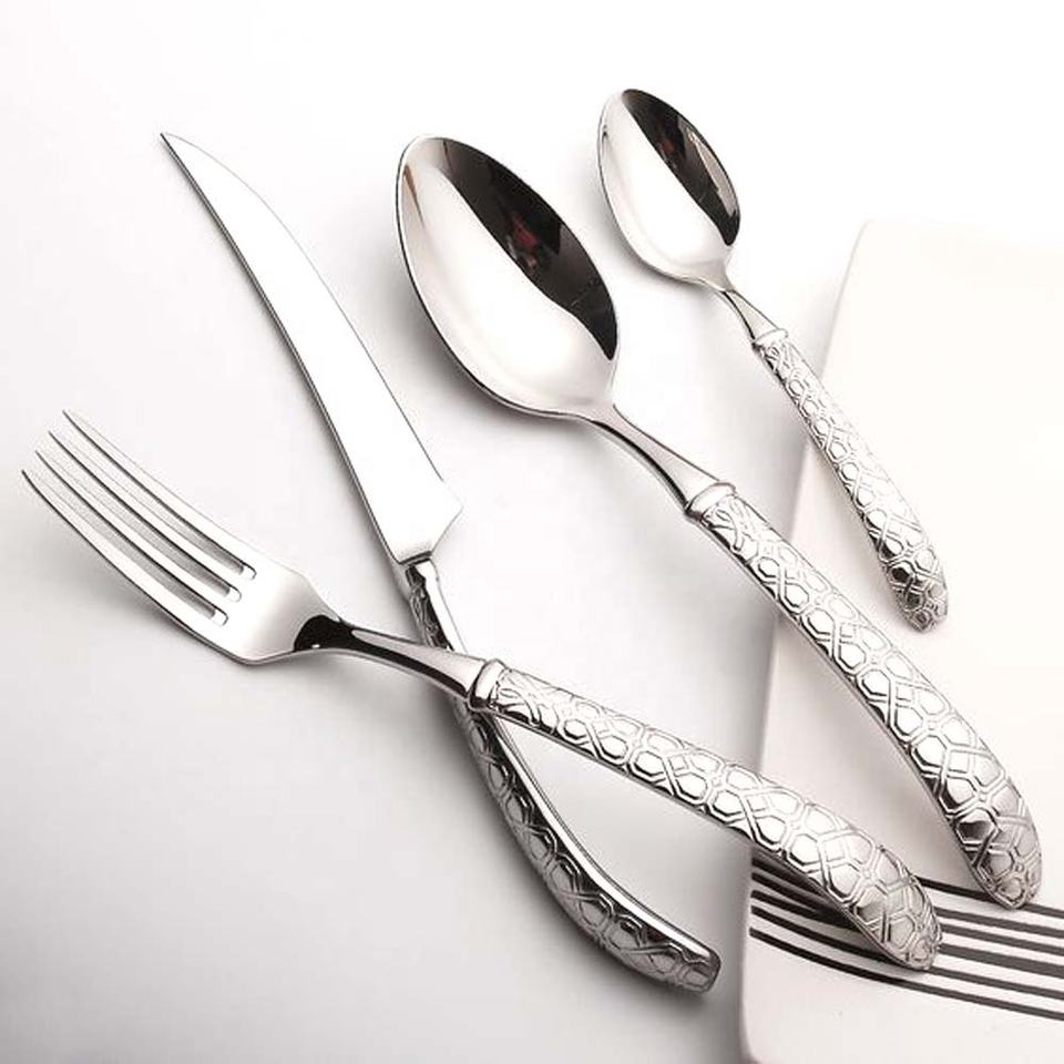 Couverts de haute qualité, prix d'usine, couverts plaqués argent, couverts avec manche long ondulé argenté mat, ensemble de couverts