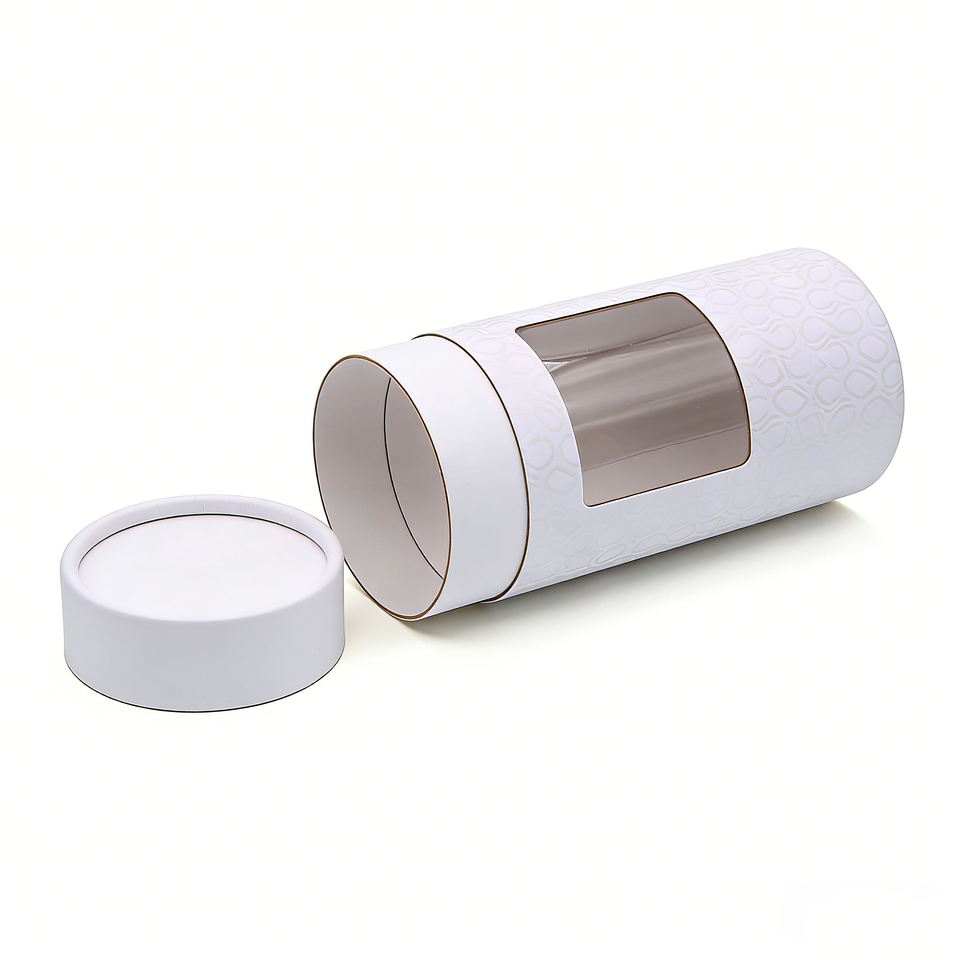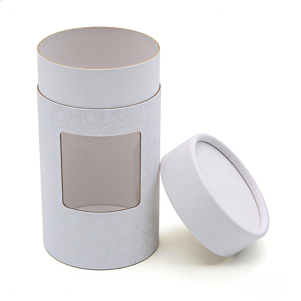Boîte cylindrique en carton de haute qualité avec fenêtre en PVC, taille personnalisée, tube en papier rond de luxe pour l'emballage du thé et des aliments