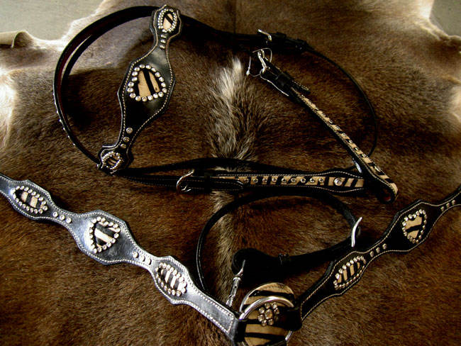 Ensemble de collier de poitrine de décrochage équestre en cuir DD de haute qualité incrustation en forme de coeur zèbre cheveux couleurs assorties pour cheval occidental