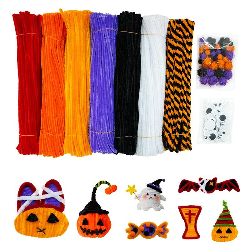 Bâtonnets de chenille colorés faits main de haute qualité, 0,6*30 cm, en polyester, pour décorations d'Halloween et cadeaux