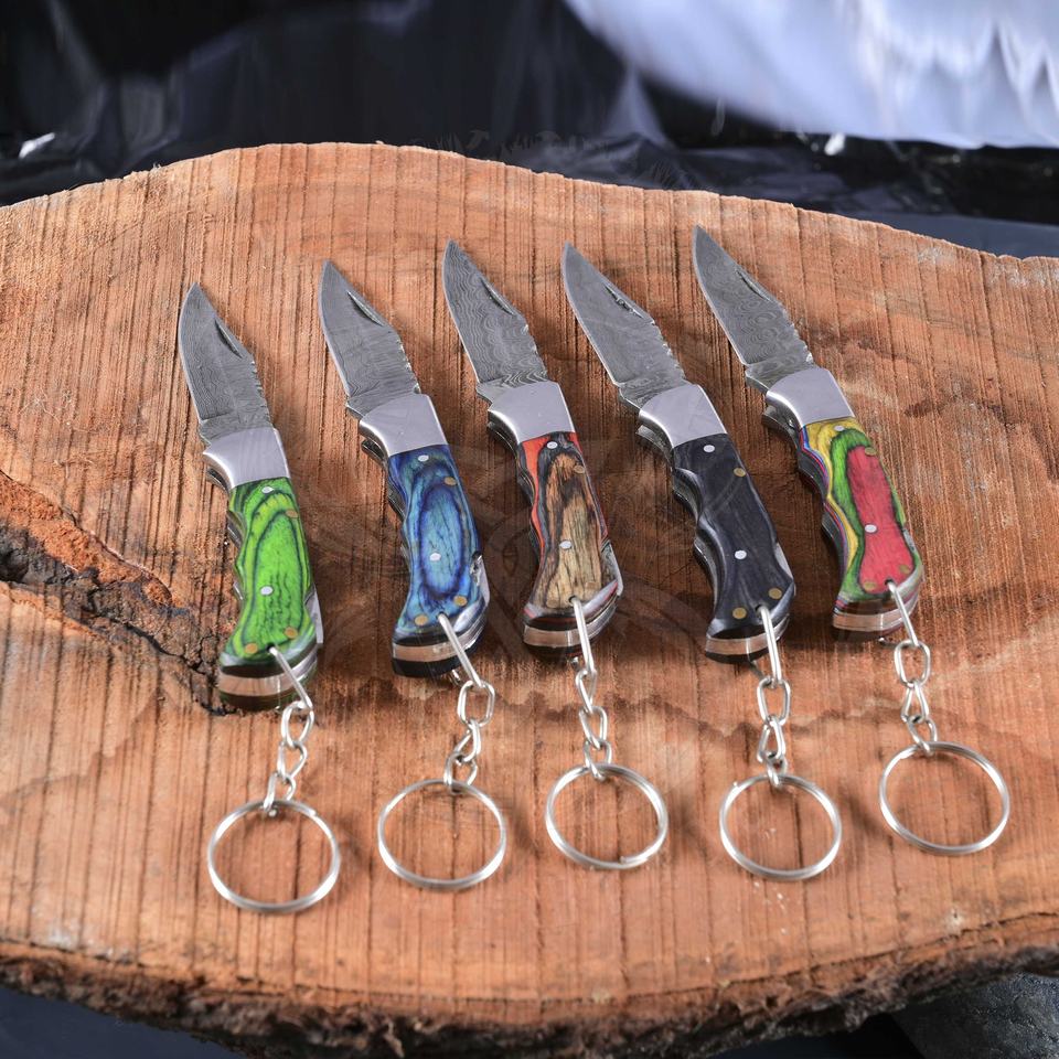 Porte-clés en acier damas de haute qualité couteaux pliants dernier style nouveau design avec personnalisation OEM prix de gros