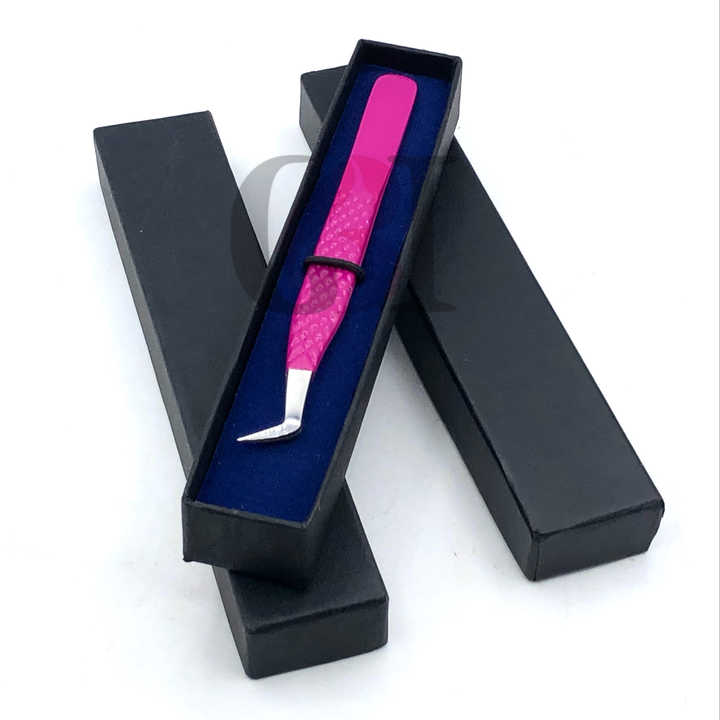 High Quality Dark Pink Powder Coating Fiber Nano Tip Boot Volume Stainless Steel Eyelash Extension Tweezers Beauty Instruments