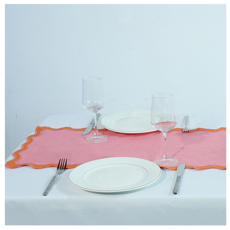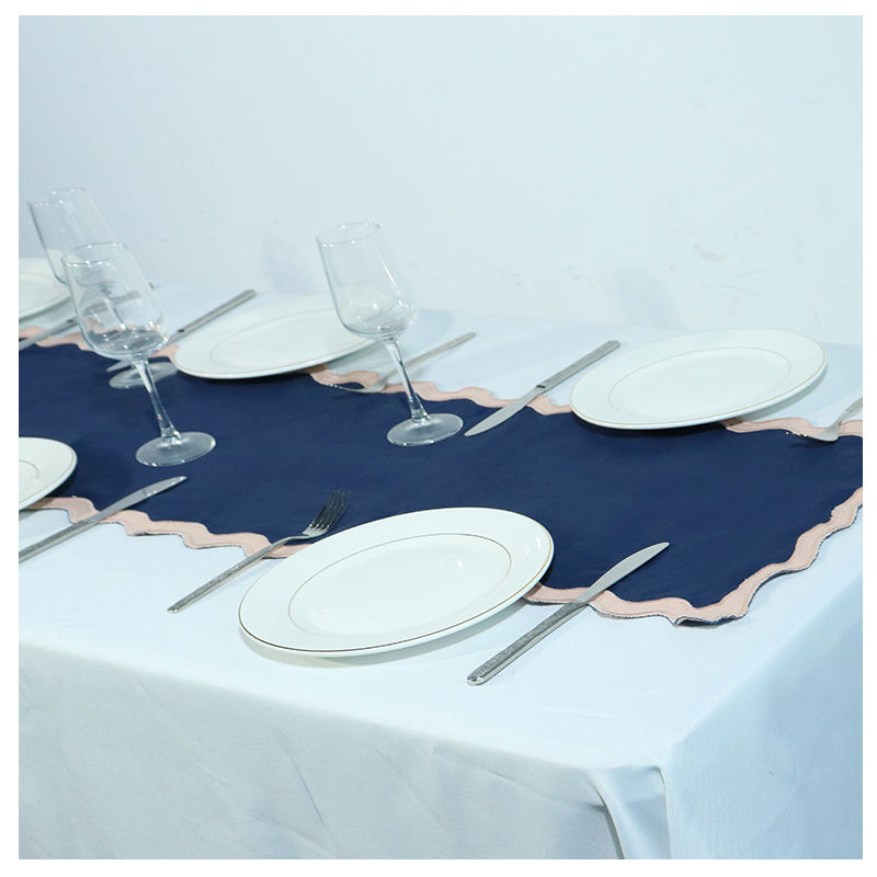 Chemin de Table en lin sarcelle foncé de haute qualité avec bordure de broderie Technique tissée décor de mariage d'hôtel à la maison moderne