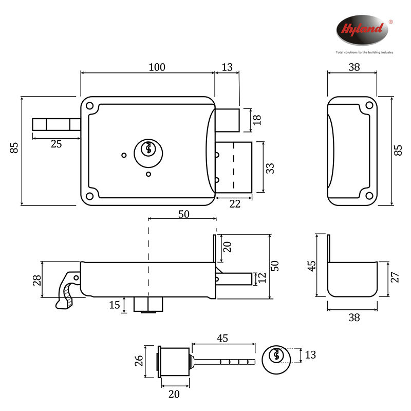 Serrure de jante à pêne dormant de haute qualité Hyland OEM 5835 loquet de nuit à double cylindre et serrure de jante, serrure de porte d'entrée