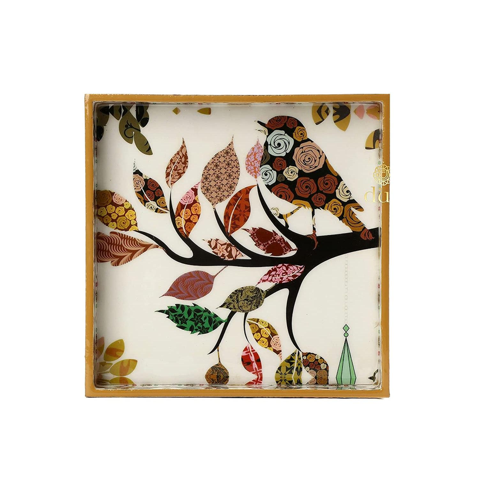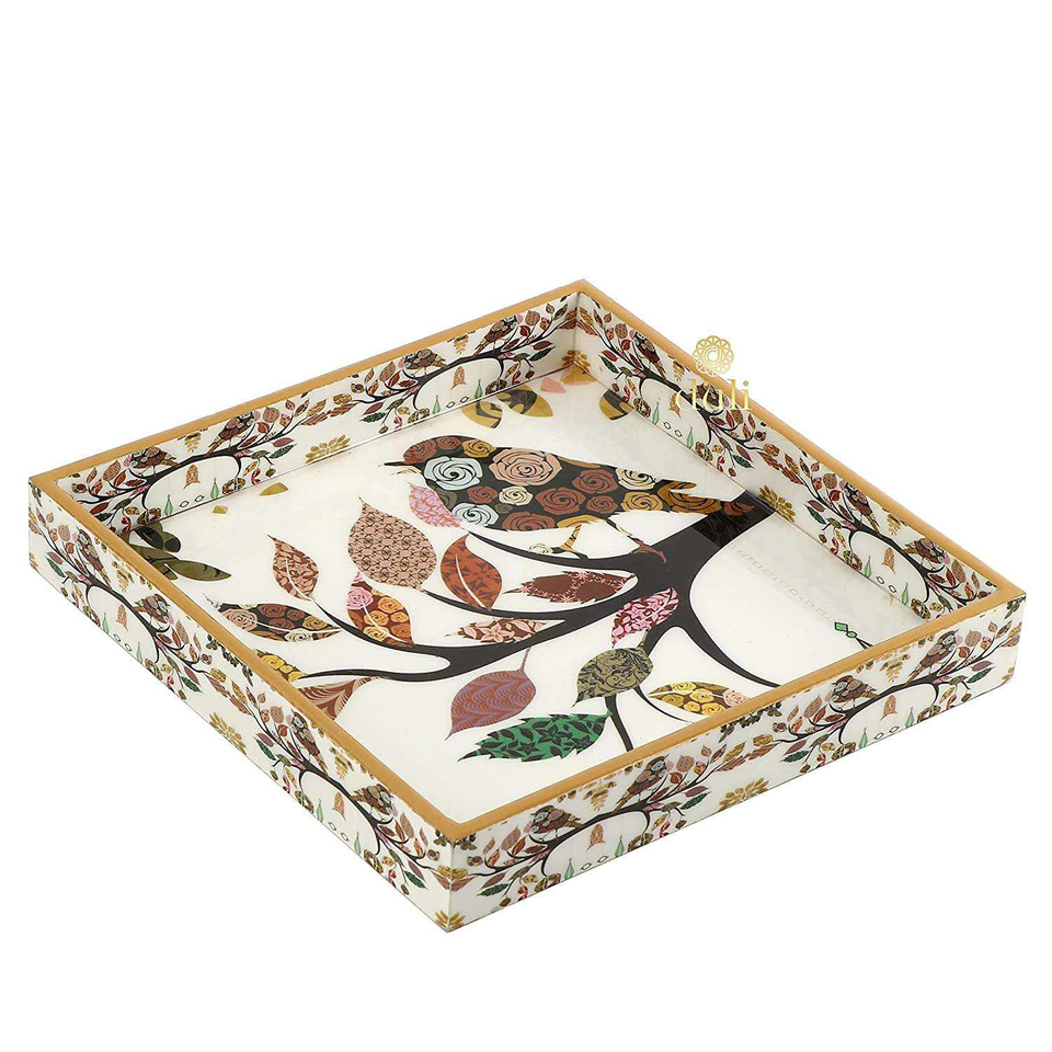 Plateau de service multifonctionnel décoratif fait main de haute qualité, 26L x 26W x 4H centimètres, en MDF et bois, à prix d'exportation