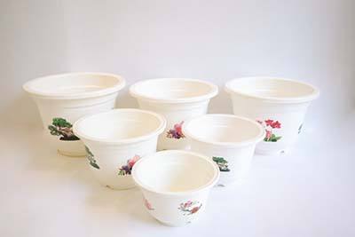 Envoyer une demande Pots de fleurs décoratifs en plastique PP de haute qualité avec motif floral imprimé | Logo personnalisé et motif disponibles