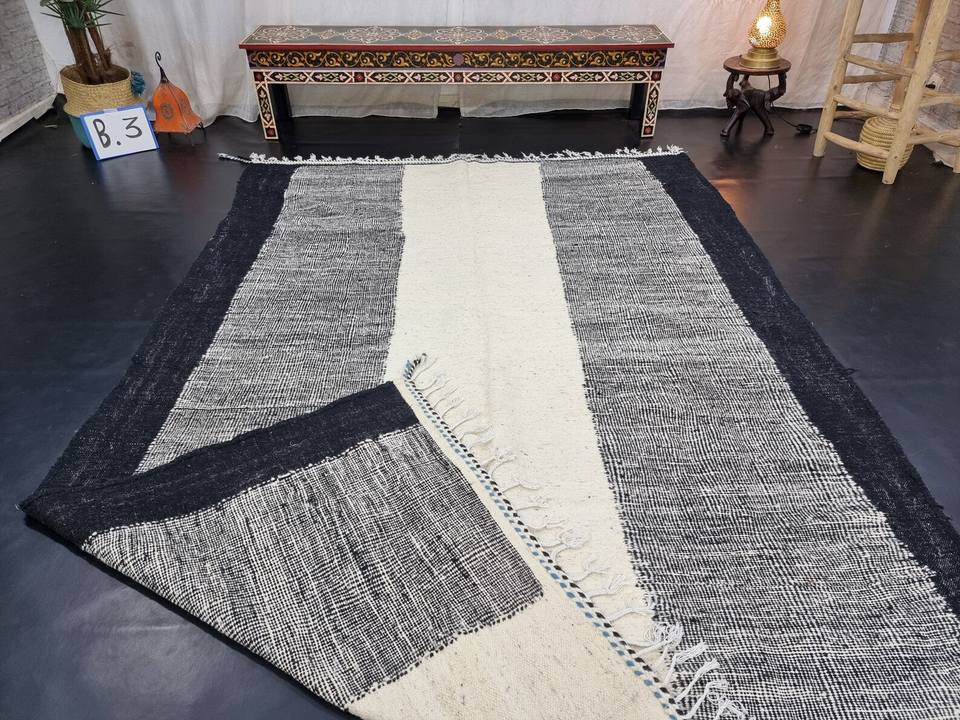 Haute Qualité Décoratif Superbe Zanafi Tapis À La Main Laine Marocain Berbère Tapis Noir & Blanc Rayé Tissé À La Main Dhurrie Tapis