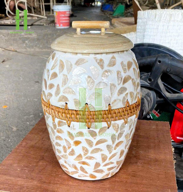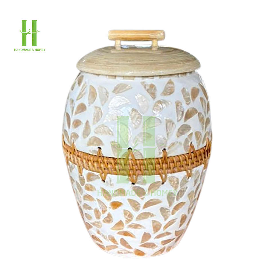 Rotin décoratif et de stockage de haute qualité et pot de nacre avec couvercle décor à la maison